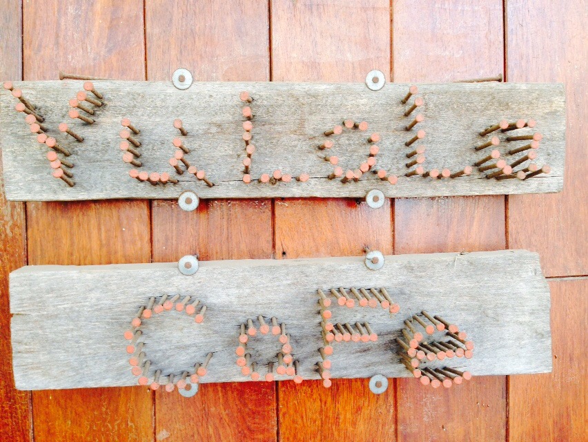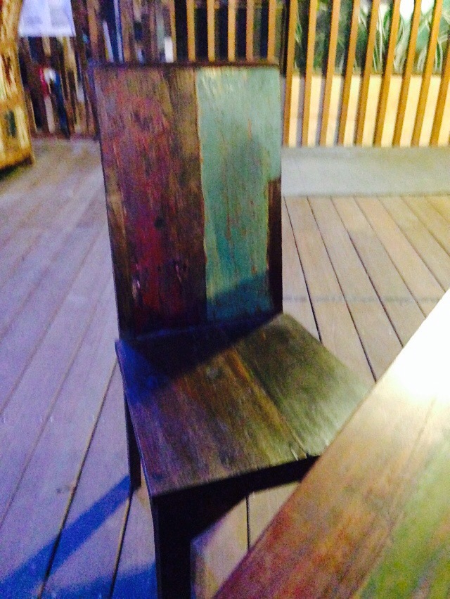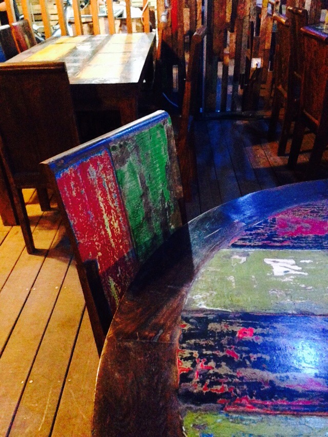 Bali has a lot to offer for sun worshippers and beach bums. But it is also a very good place to pick up new/old ideas. Like the inventory at the sports bar next to the hotel. Chairs and tables are made out of wood and painted old to get that rustic feeling. I like it and the husband likes the English football on the tv’s. Everybody’s happy.